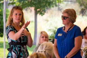 The August luncheon was held at The Cottages of Boise, and was co-sponsored by Bridgetower Chiropractic and Home Instead. We bade farewell to the dog days of summer with an outdoor meal of sandwiches and salad, along with cookies, chips, an punch.