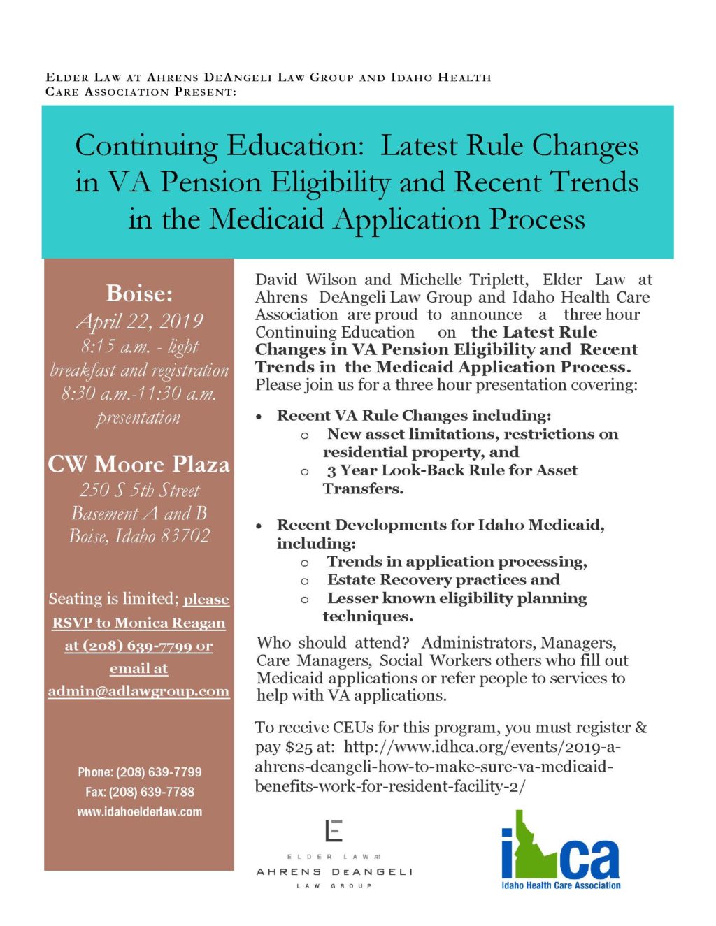 Continuing Education: Latest Rule Changes in VA Pension Eligibility and Recent Trends in the Medicaid Application Process