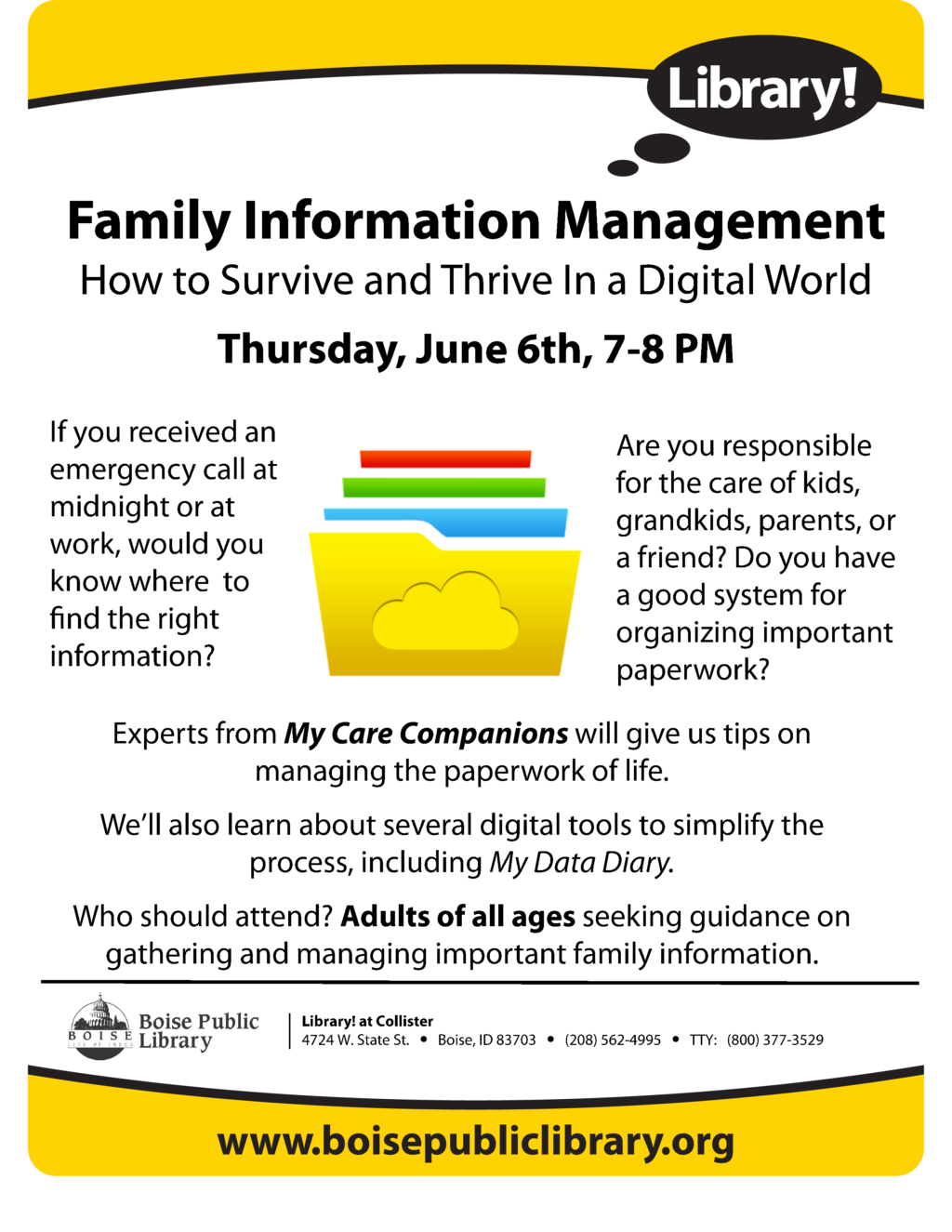 Family Information Management: How to Survive and Thrive in a Digital World @ Library! at Collister